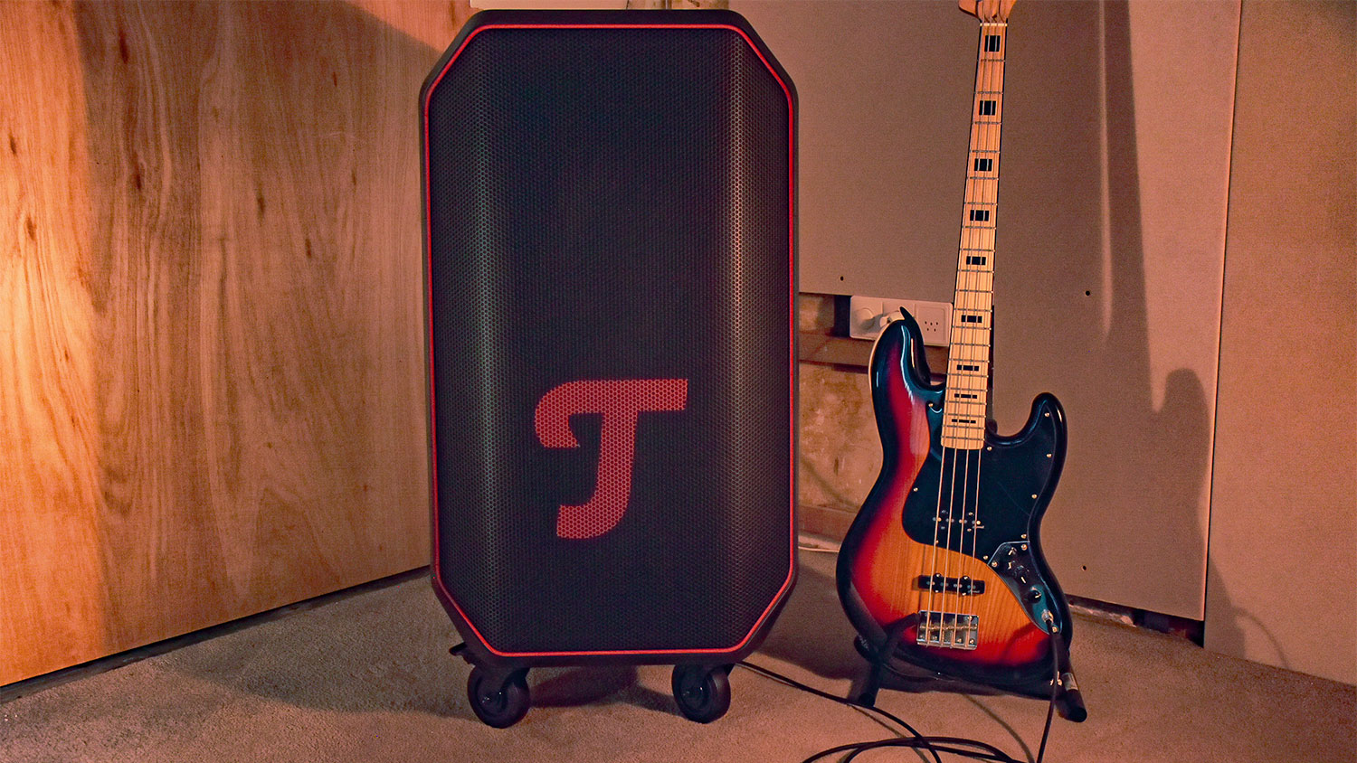Ik ben achttien, ik speel basgitaar, en ik heb de Rockster 2 van Teufel de afgelopen weken langs alle mogelijke ingangen gejaagd: mijn bas direct erop aangesloten, Spotify via bluetooth gedraaid, playlists gewisseld midden in een sessie. Het is geen setup die ik normaal zou aanraden voor iemand die het apparaat op een plank naast de tv wil zetten. Maar voor wie geluid als een ervaring beschouwt, niet als achtergrond, is dit iets anders.