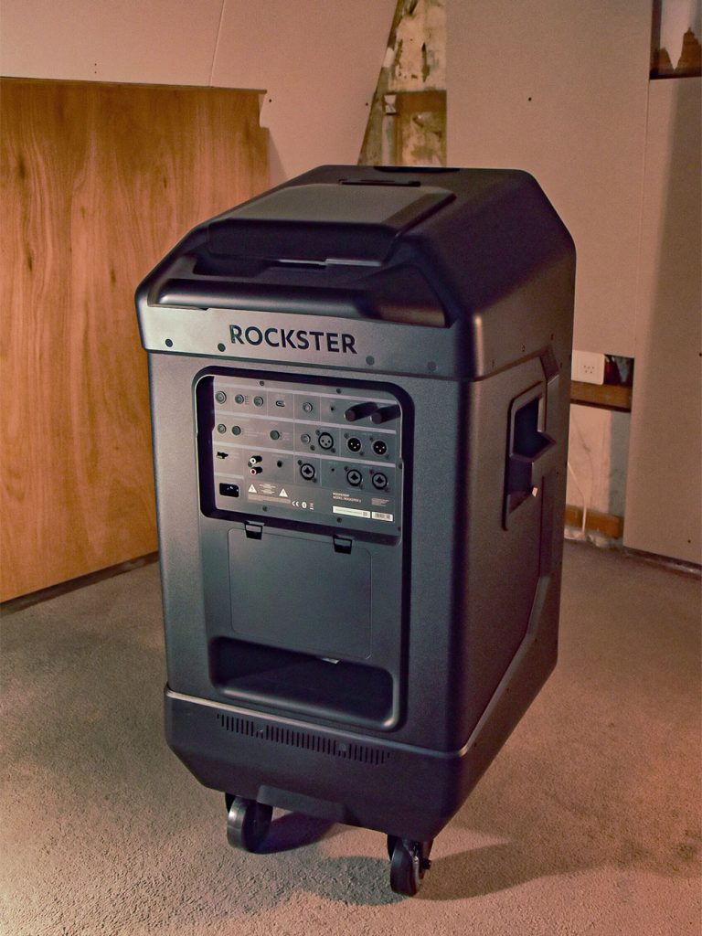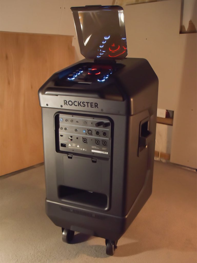 Kritisch: de Rockster 2 wordt geleverd met vier wielen, waarvan er twee volledig kunnen zwenken en twee vastzetten. In theorie begrijp ik de keuze, stabiliteit tijdens gebruik. Maar in de praktijk, als je de speaker door een smalle gang of over een drempel wilt rijden, merk je het verschil. Vier zwenkwielen zou logistiek een stuk aangenamer zijn. Het is een klein detail, maar op een speaker van dit formaat en gewicht tellen kleine details.
