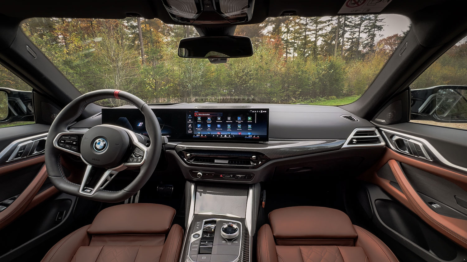 Het interieur is op het testexemplaar uitgevoerd in de BMW individual kleur Tartufo Schwartz. Voor mij is het meer cognac maar dat mag uiteraard de pret niet drukken. Er is voor iedereen een prima zitpositie te vinden. Je kan de stoel lekker laag zetten en het stuur flink naar je toehalen. Dat is met mijn bijna twee meter wel zo prettig.